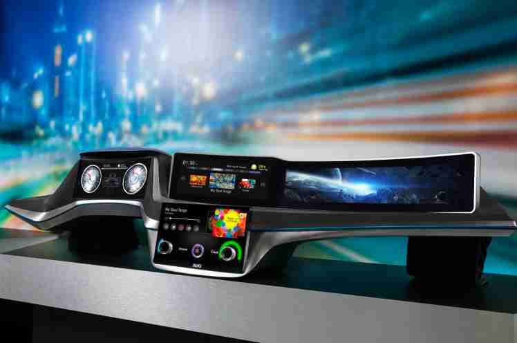 由 5G 和 AIoT 形塑的新智能场域,,促使汽车成为仅次于家庭和办公室的第三重要使用空间,,,,数码驾驶舱因而成为智能车用技术发展重心。。。森林舞会异型切割曲面驾驶舱显示器运用高解析、、、高对比度度、、广视角,,,,以及多片显示屏全贴合技术,,,衔接搭载 Mini LED 背光的仪表板显示器、、、、具备显示区通孔设计的内嵌式触控中控台显示器,,,,以及位于副驾的 AHVA 广视角曲面显示器,,打造近乎一体成型的超大型驾驶舱显示器。。。为了提高驾驶安全和便利性,,用于后视镜的森林舞会 9.6寸异型切割 LTPS 显示器具有极窄边框,,,,可切换镜面或 LCD 模式,,,并有防眩光设计可避免夜间的前灯眩光。。。。
