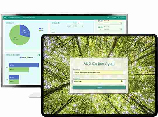 依循 ISO 国际标准建置出符合国际标准的全方位碳管理平台 (AUO Carbon Agent),,,其中温室气体盘查模组可协助客户将组织、、产品与供应链的碳排放源数据,,,透过系统内建的系数资料库自动计算出碳排量,,提升整体盘查作业的效率,,,,并以此拟定长期减碳策略,,,达到低碳转型、、净零碳排的目标。。。。